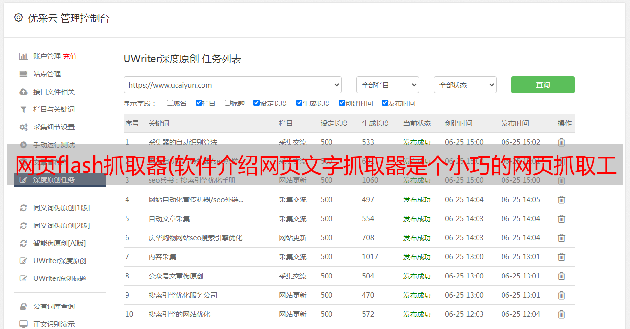 优采云 发布时间: 2021-10-25 21:12网页flash抓取器(软件介绍网页文字抓取器是个小巧的网页抓取工具)