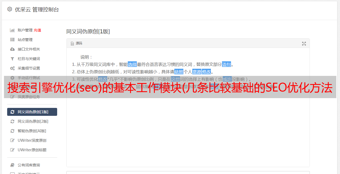 优采云 发布时间: 2021-10-25 21:20搜索引擎优化(seo)的基本工作模块(几条比较基础的SEO优化方法,你知道几个?