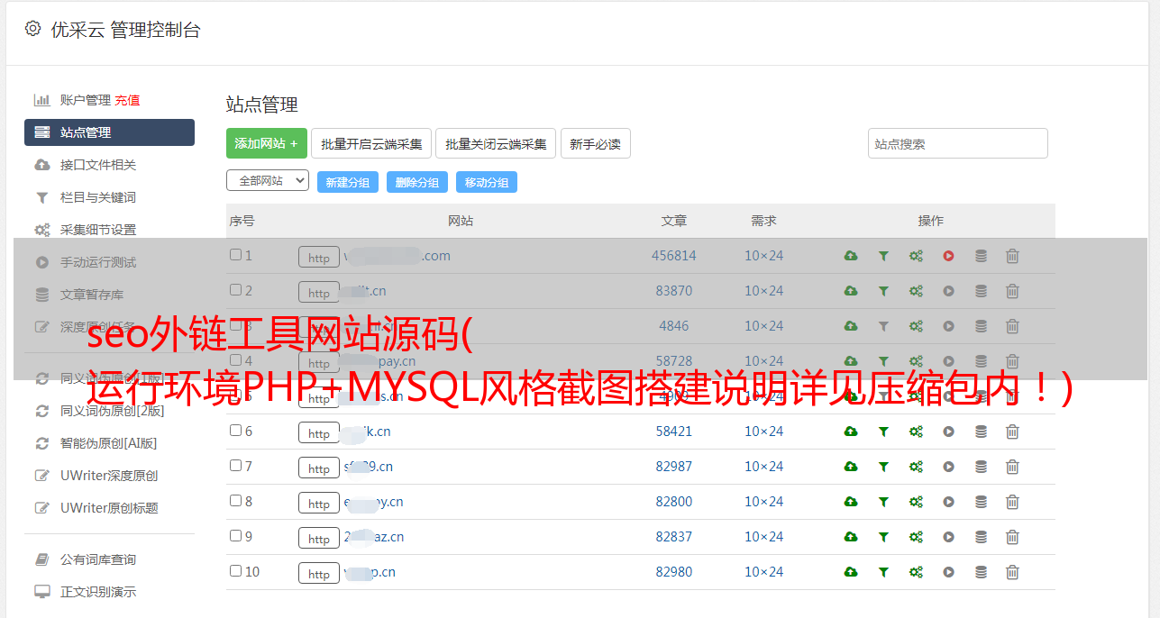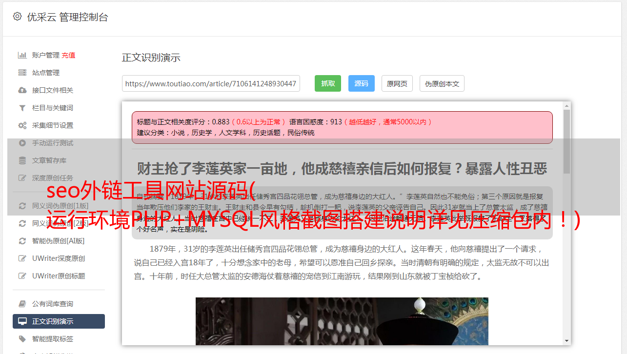 seo外链工具网站源码( 运行环境PHP+MYSQL风格截图搭建说明详见压缩包内!)