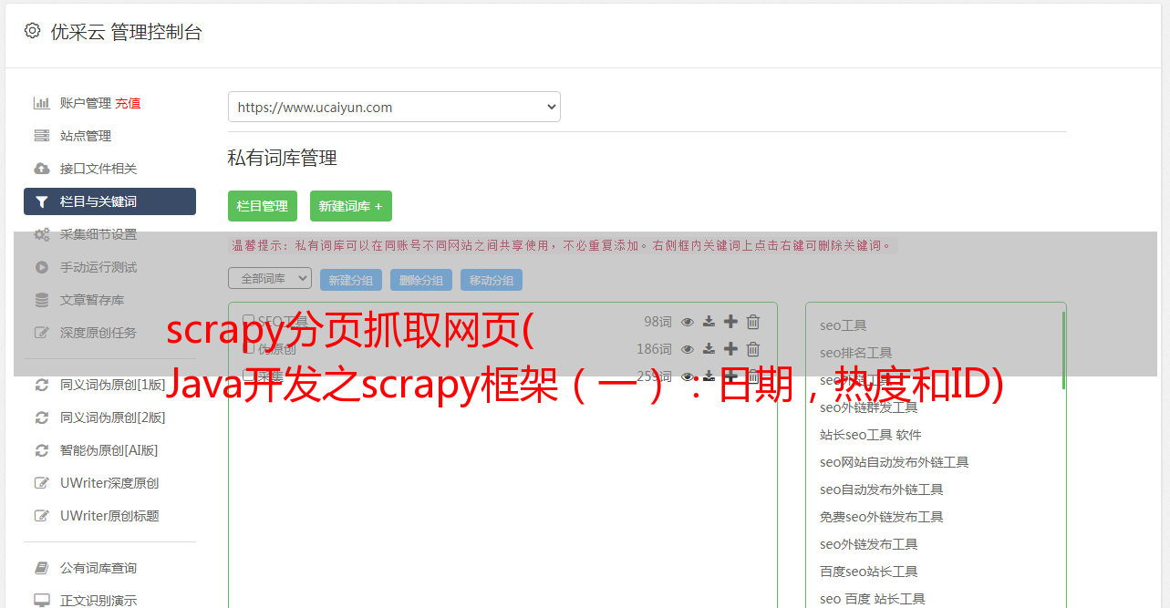 Java开发之scrapy框架(一):日期,热度和ID)