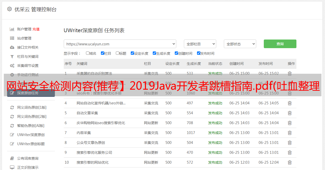 优采云 发布时间: 2021-10-26 08:12网站安全检测内容(推荐】2019Java开发者跳槽指南.pdf(吐血整理))