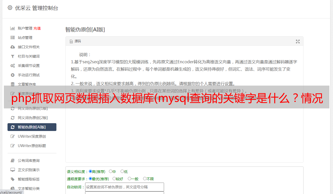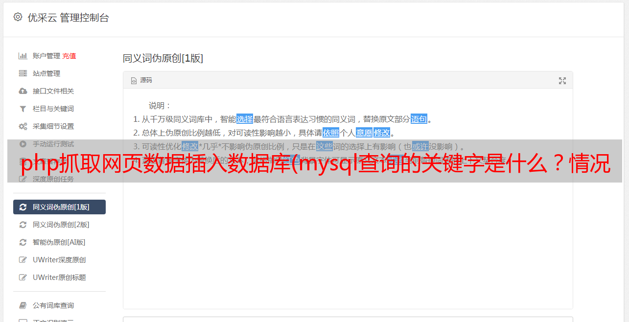 优采云 发布时间: 2021-10-26 09:24php抓取网页数据插入数据库(mysql查询的关键字是什么?情况怎么处理??)
