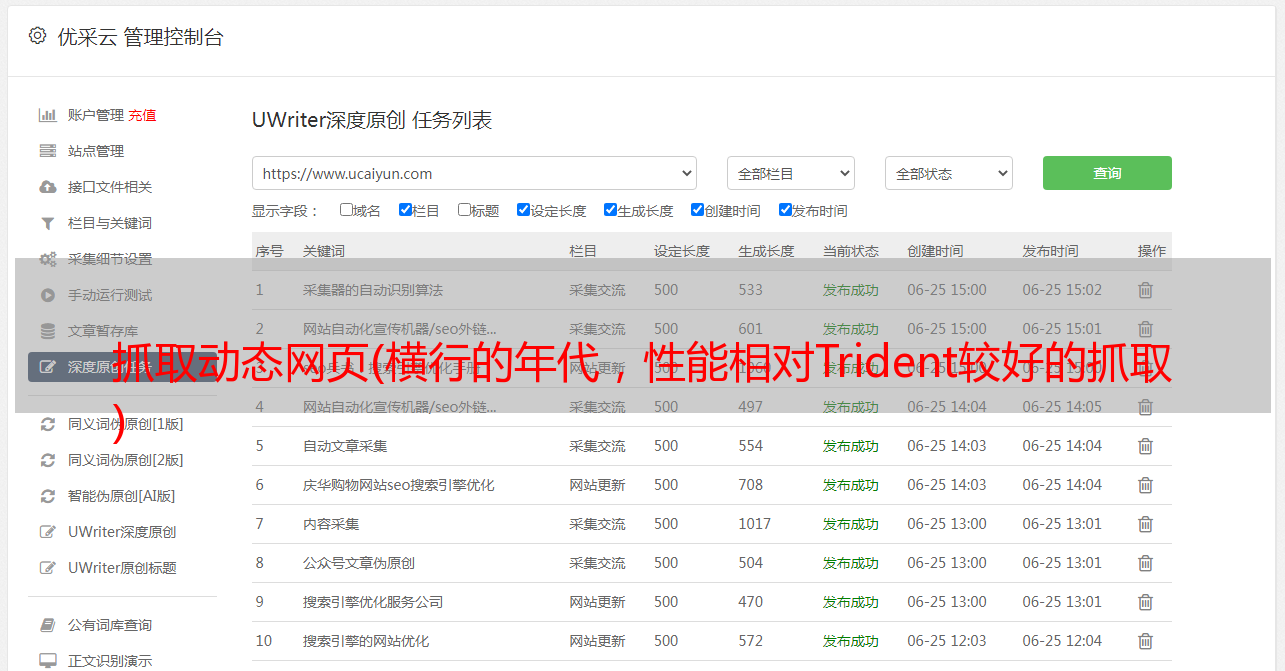 抓取动态网页(横行的年代,性能相对Trident较好的抓取 )