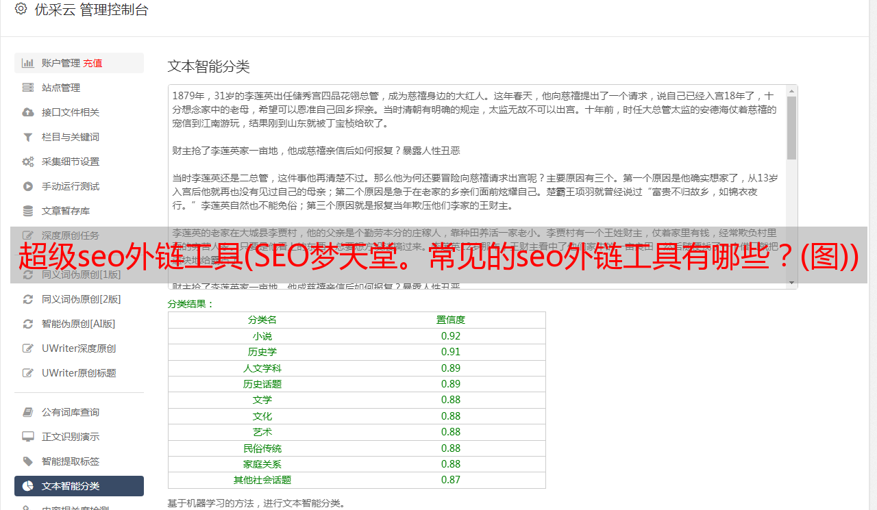 优采云 发布时间: 2021-10-26 15:14超级seo外链工具(SEO梦天堂。常见的seo外链工具有哪些?(图))