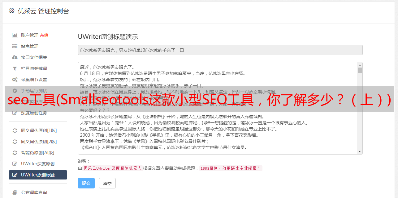 优采云 发布时间: 2021-10-26 17:15seo工具(Smallseotools这款小型SEO工具,你了解多少?(上))