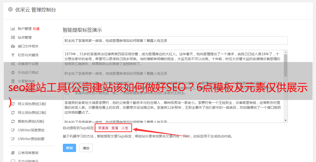 优采云 发布时间: 2021-10-26 19:00seo建站工具(公司建站该如何做好SEO?6点模板及元素仅供展示