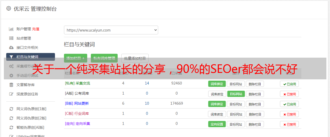 优采云 发布时间: 2021-02-15 08:01关于一个纯采集站长的分享,90%的SEOer都会说不好