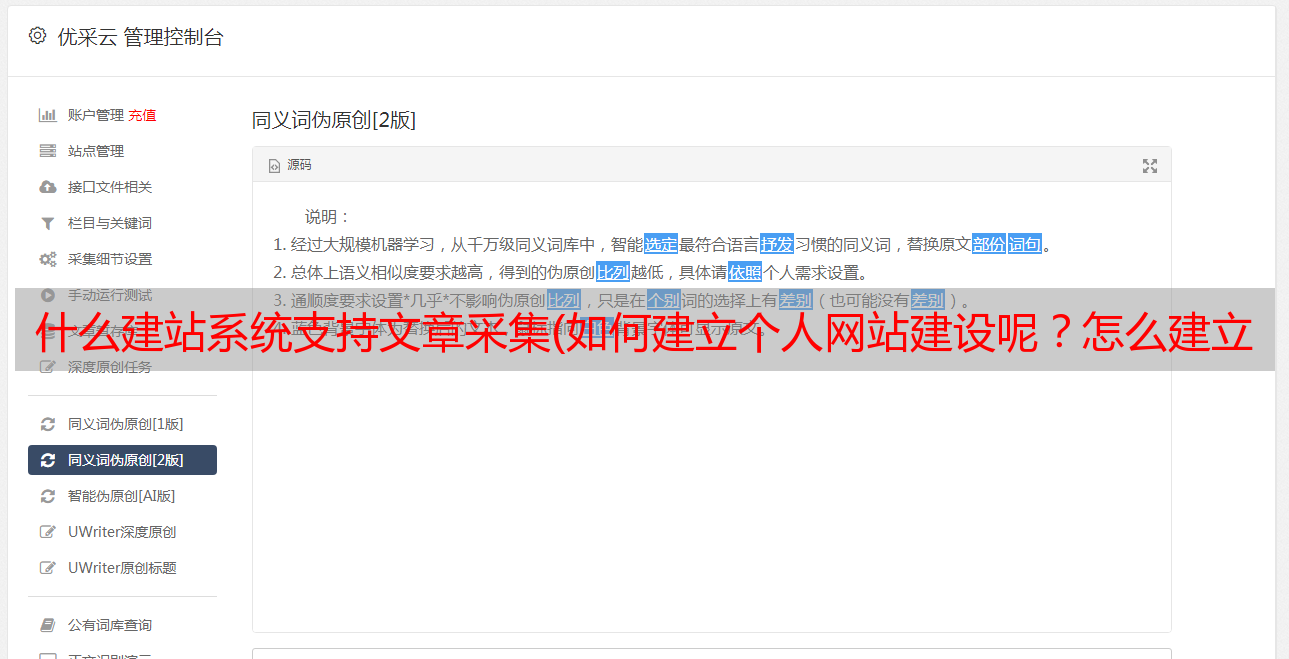 优采云 发布时间: 2021-10-26 20:09什么建站系统支持文章采集(如何建立个人网站建设呢?怎么建立建站系统?)
