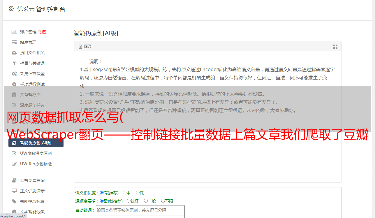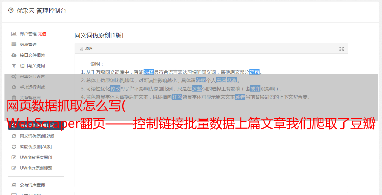 优采云 发布时间: 2021-10-26 23:13网页数据抓取怎么写(