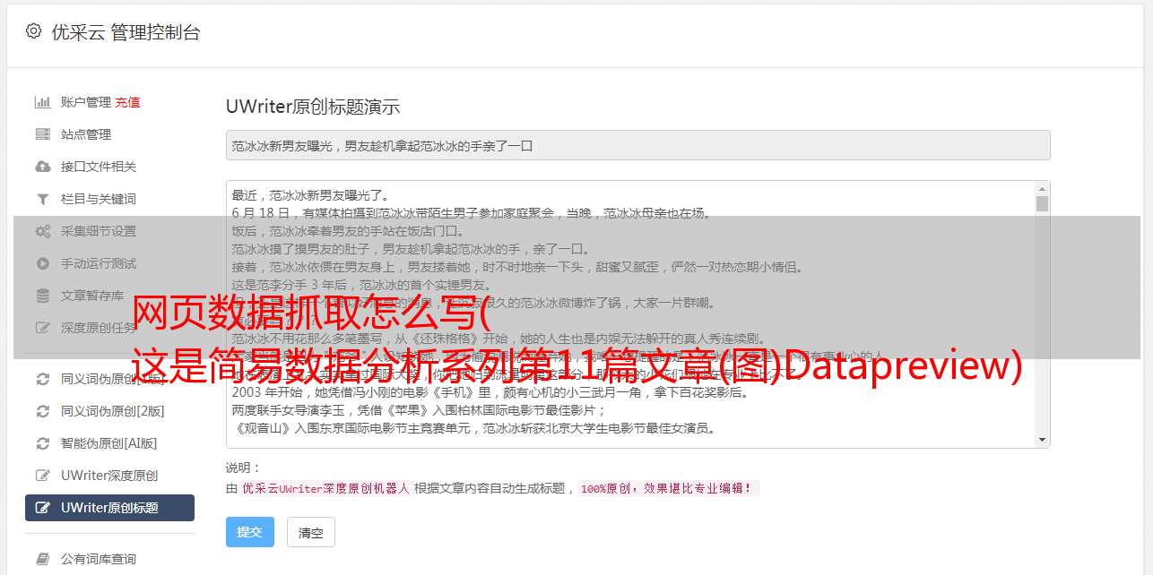 优采云 发布时间: 2021-10-26 23:15网页数据抓取怎么写(