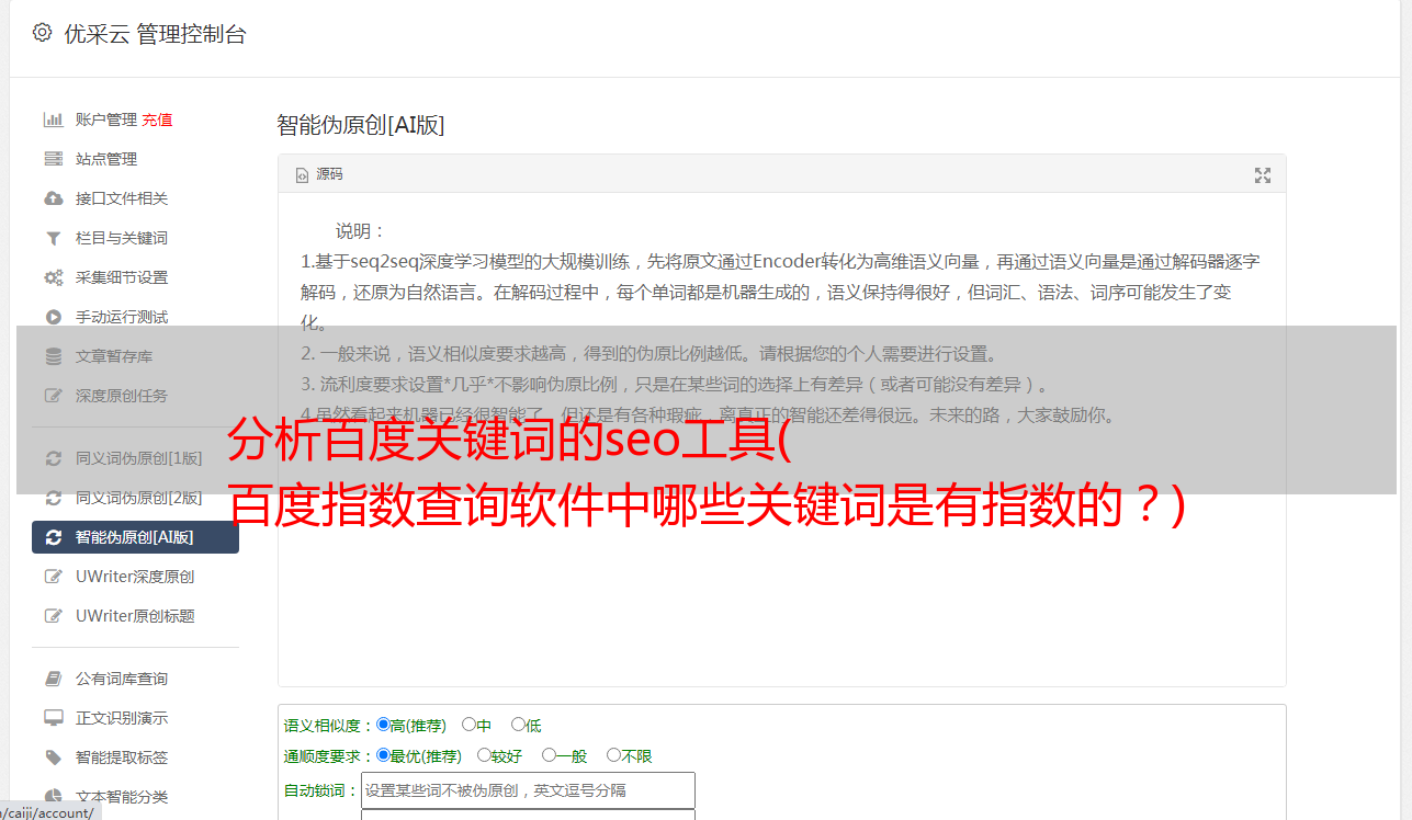 优采云 发布时间: 2021-10-27 00:03分析百度关键词的seo工具(