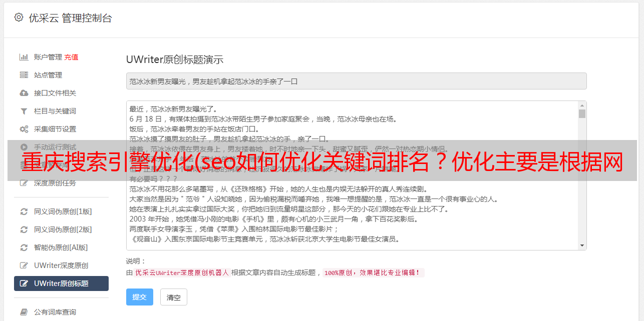 优采云 发布时间: 2021-10-27 08:11重庆搜索引擎优化(seo如何优化关键词排名?优化主要是根据网站的核心定位)