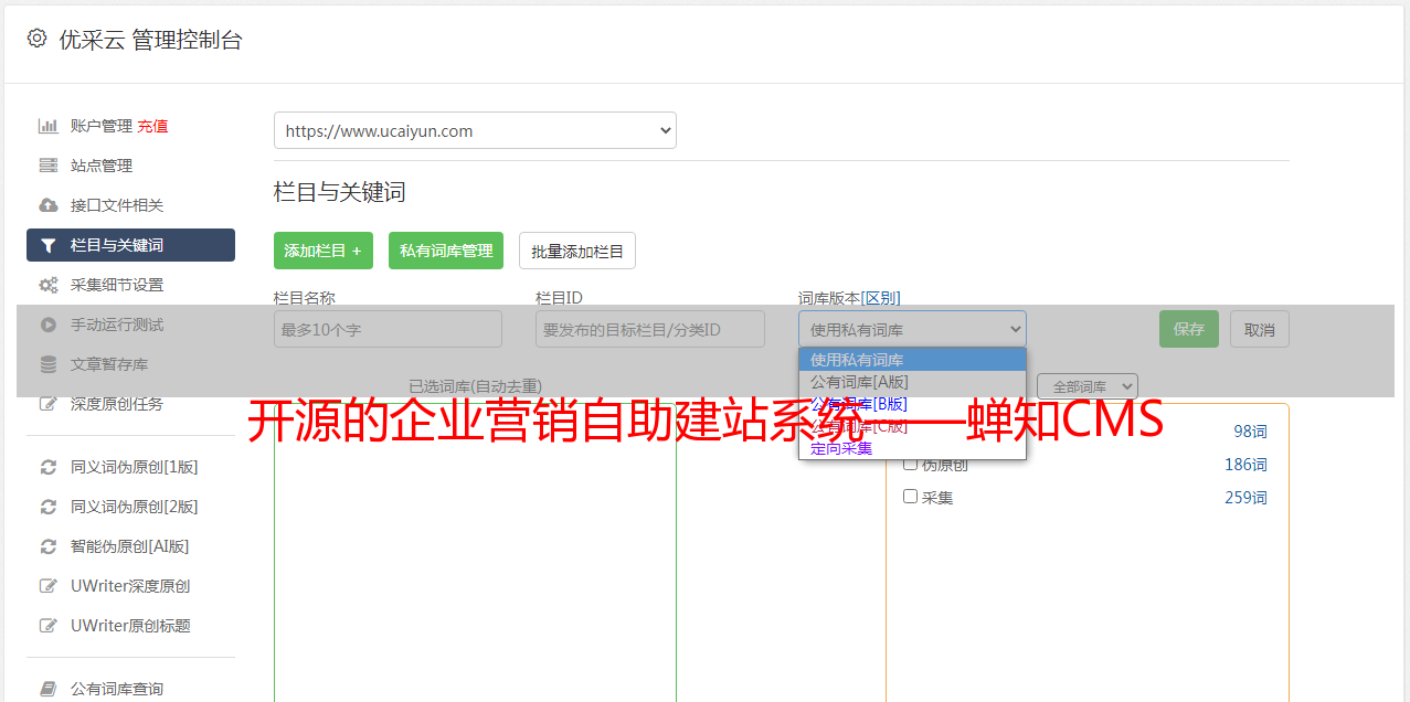 蝉具有全面的功能,包括文章发布,会员管理,论坛评论,产品展示等,以及内置的商城系统,具有商品,订单,物流和付款功能。除了免费版本外,还有更专业的企业版和站群版本适合网站建设者。