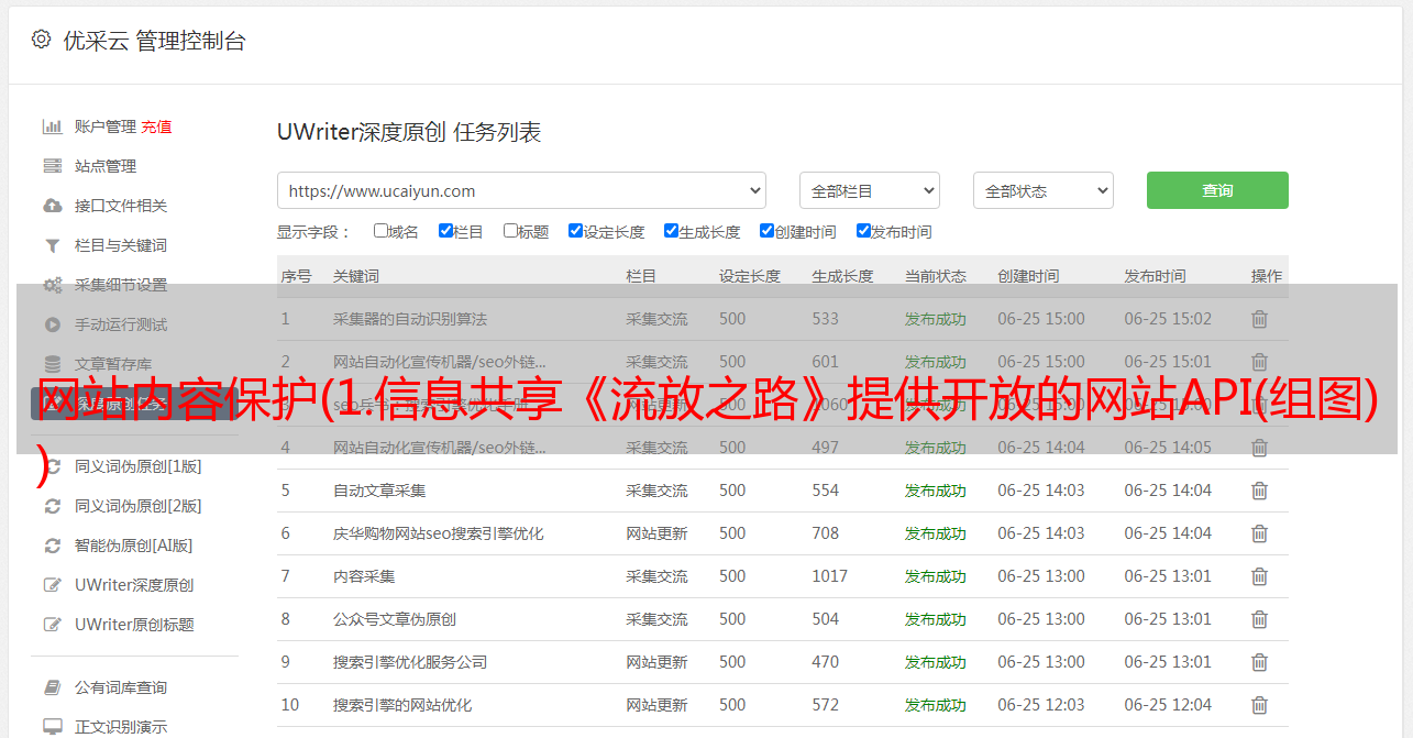 优采云 发布时间: 2021-10-27 16:03网站内容保护(1.信息共享《流放之路》提供开放的网站API(组图)