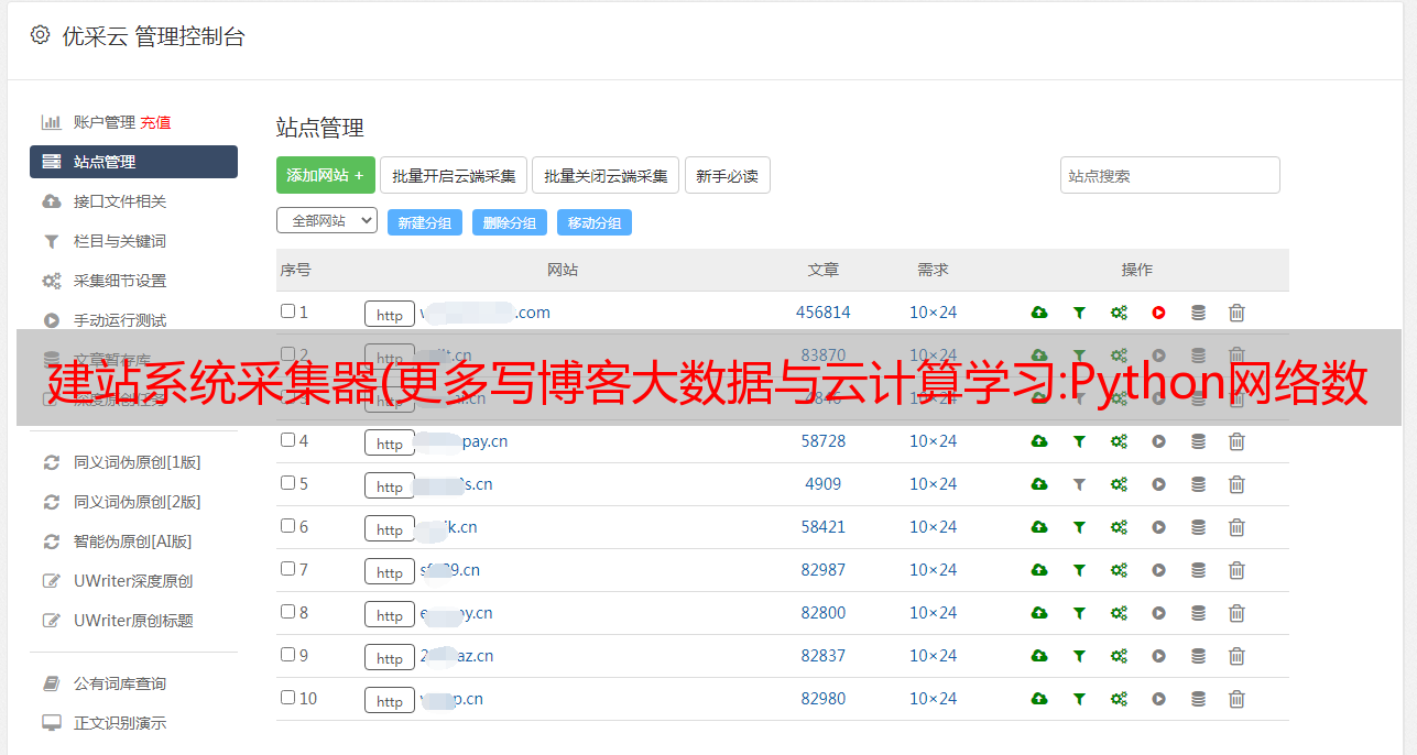 建站系统采集器(更多写博客大数据与云计算学习:Python网络数据采集)