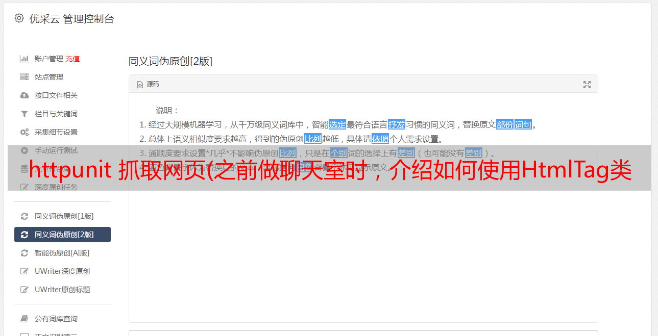 优采云 发布时间: 2021-10-27 21:19httpunit 抓取网页(之前做*敏*感*词*时,介绍如何使用HtmlTag类来抓取网页信息)