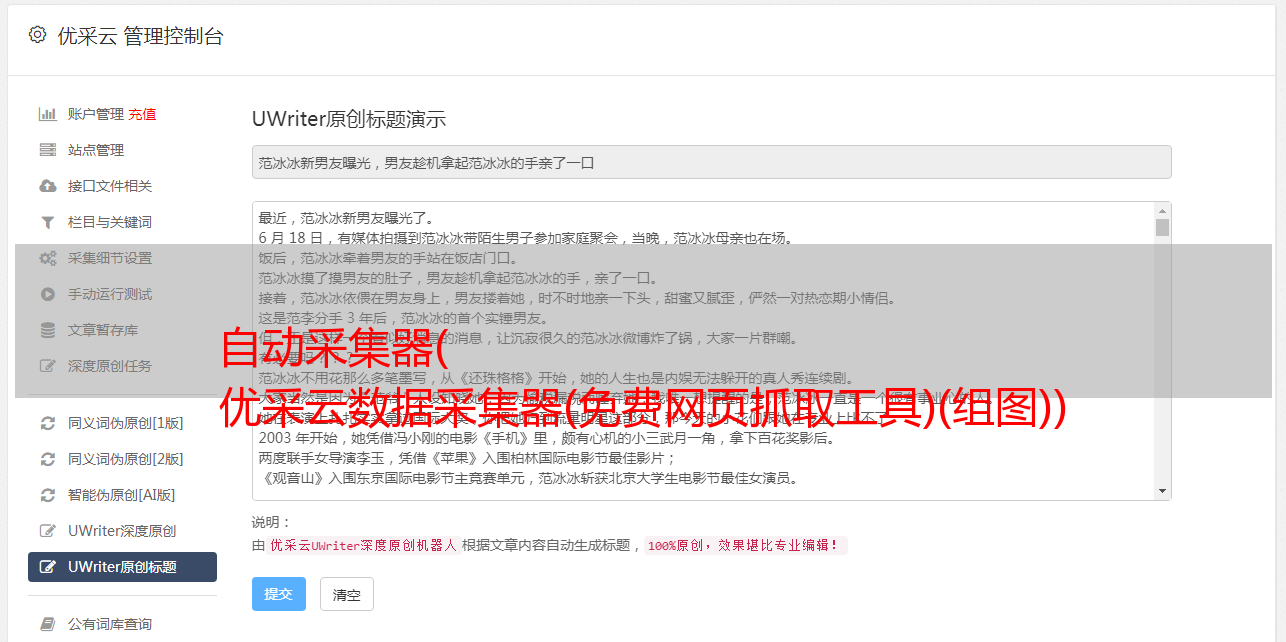 优采云 发布时间: 2021-10-28 00:00自动采集器(