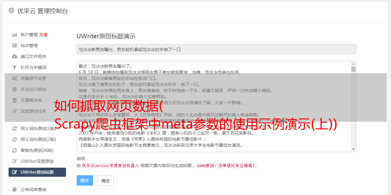 如何抓取网页数据( Scrapy爬虫框架中meta参数的使用示例演示(上))