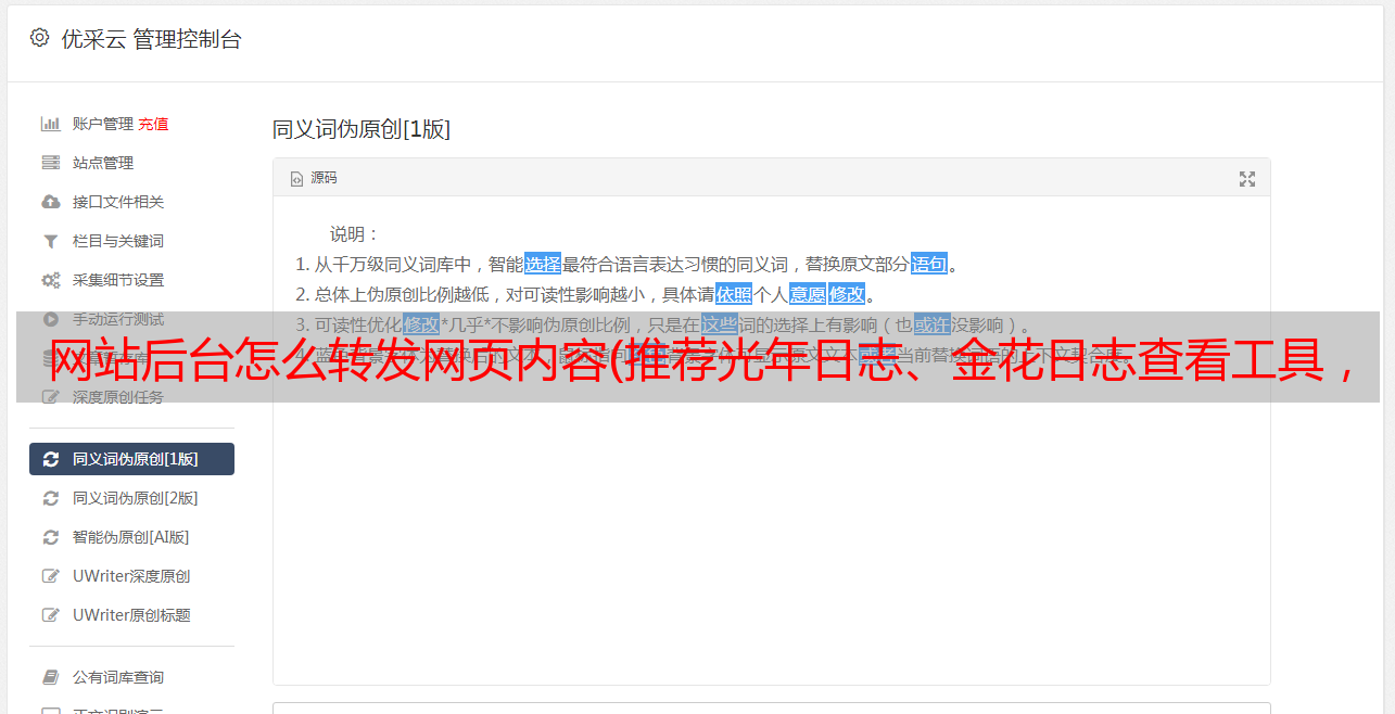 优采云 发布时间: 2021-10-28 05:19网站后台怎么转发网页内容(推荐光年日志、金花日志查看工具,网站日志分析工具)
