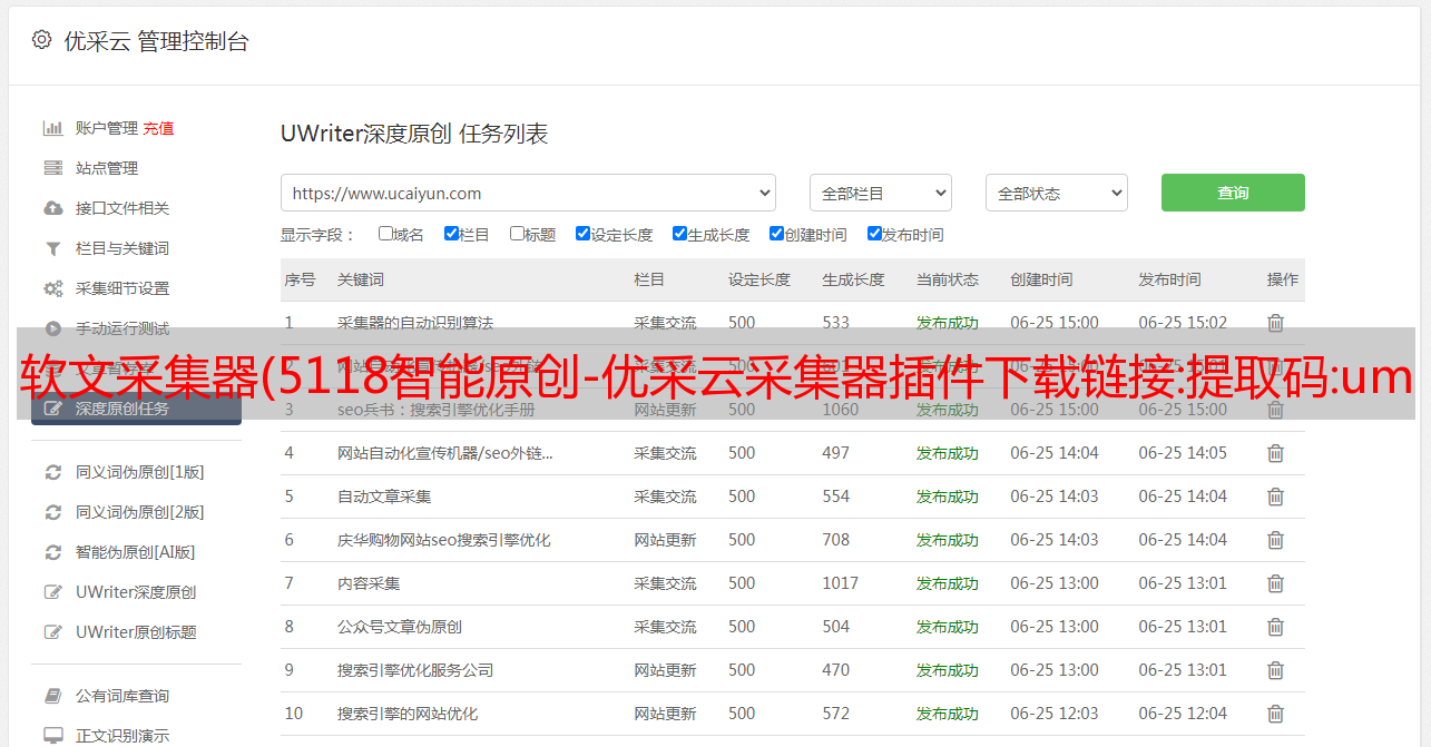 经过一段时间的研究,现在已经掌握了优采云采集技术能力,优采云采集对接开源cms程序自动更新能力,可以结合ai伪原创接口实现批量采集,直接发布到WP、DEDEcms网站。说实话,我不常被问到采集相关的问题,我也根本不愿意去研究这些采集技术。