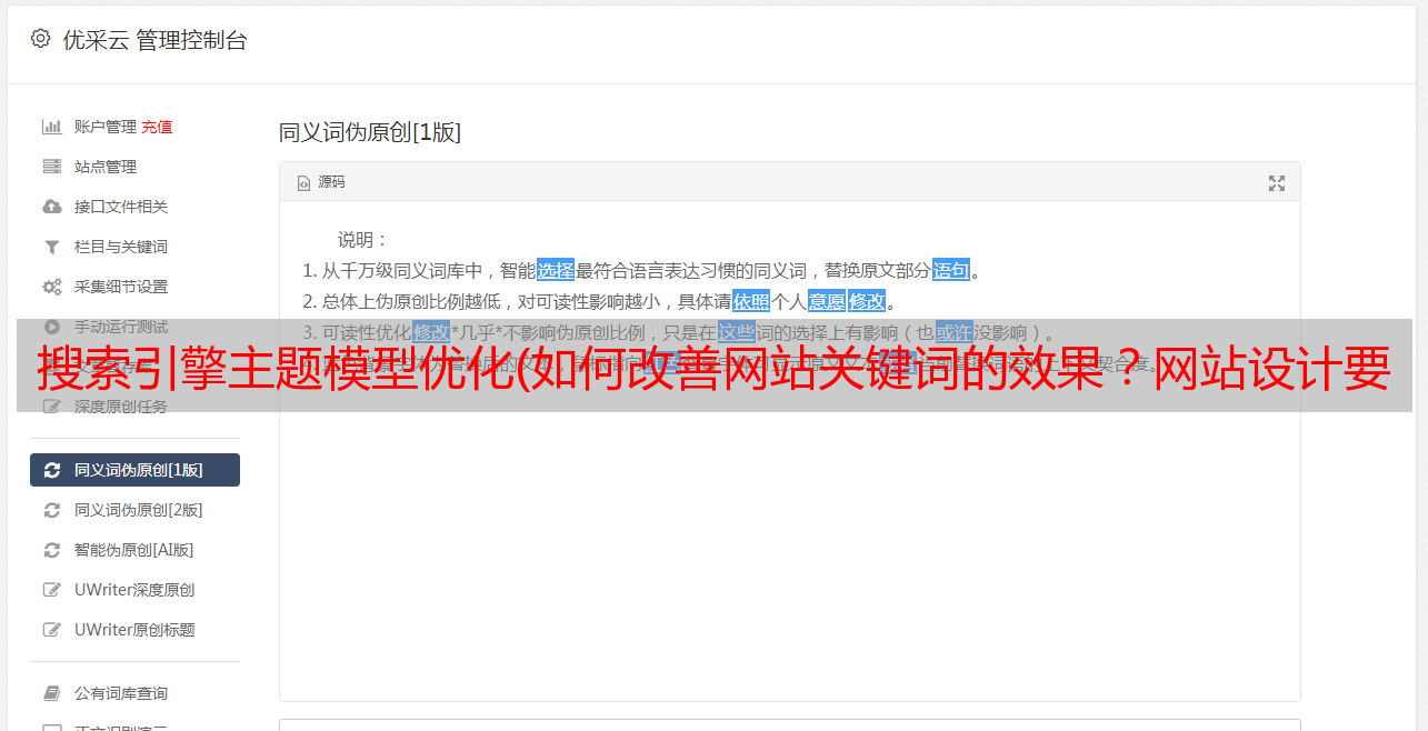 优采云 发布时间: 2021-10-28 11:13搜索引擎主题模型优化(如何改善网站关键词的效果?网站设计要注意什么?)