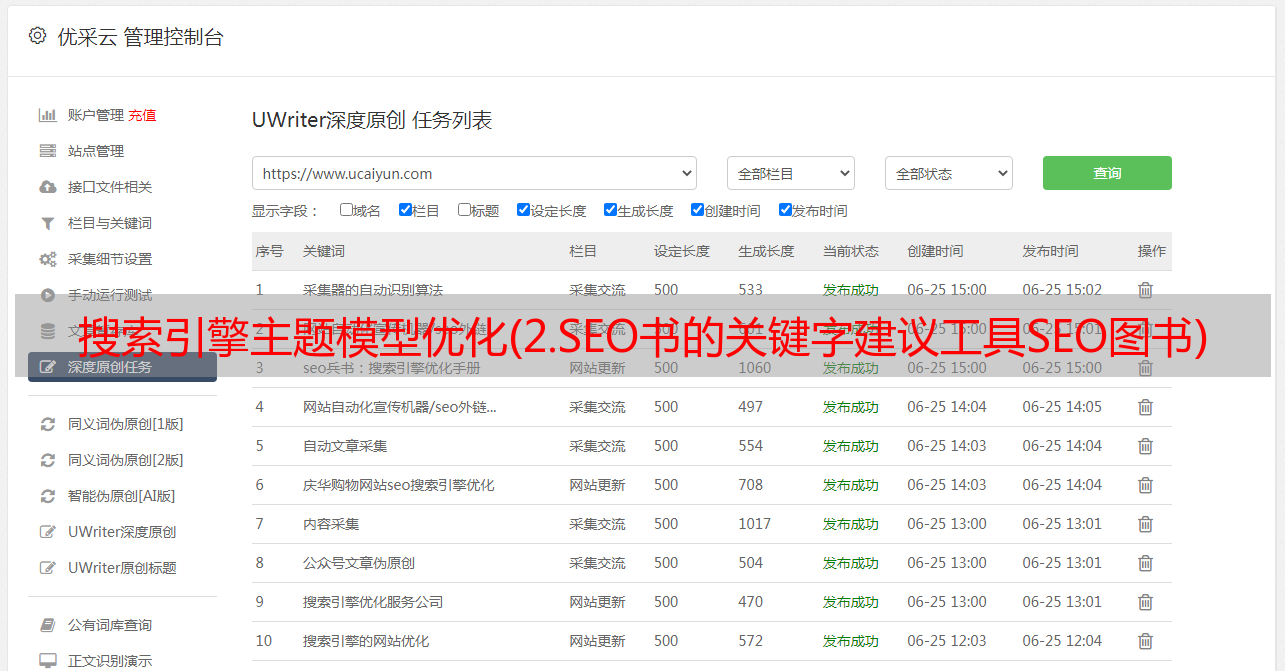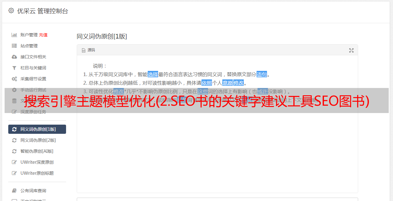 优采云 发布时间: 2021-10-28 23:01搜索引擎主题模型优化(2.SEO书的关键字建议工具SEO图书)