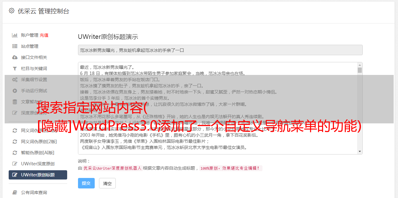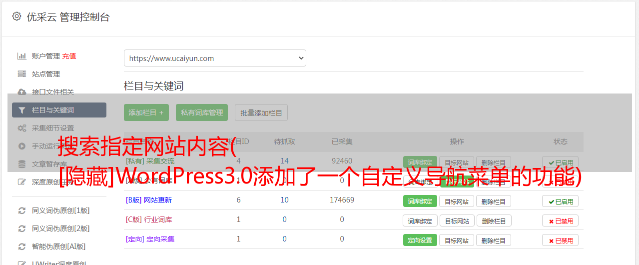 搜索指定网站内容( [隐藏]WordPress3.0添加了一个自定义导航菜单的功能)