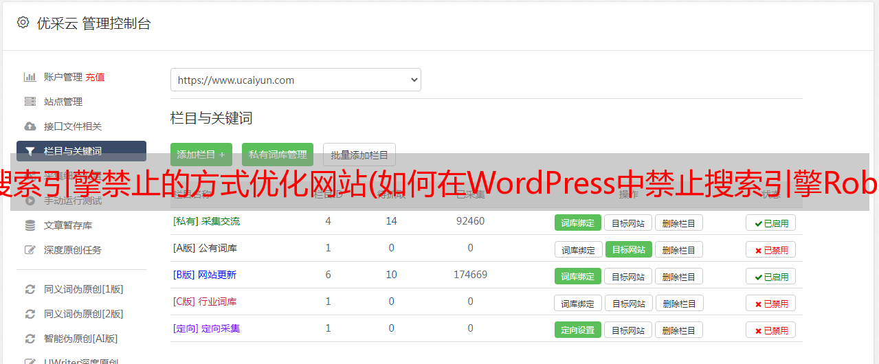通常站长会使用Robots.txt文件来禁止搜索引擎,但是一般系统没有内置这个功能,需要自己写规则上传