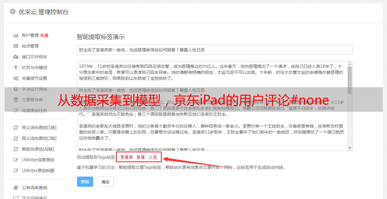 优采云 发布时间: 2021-03-10 10:51从数据采集到模型,京东iPad的用户评论#none