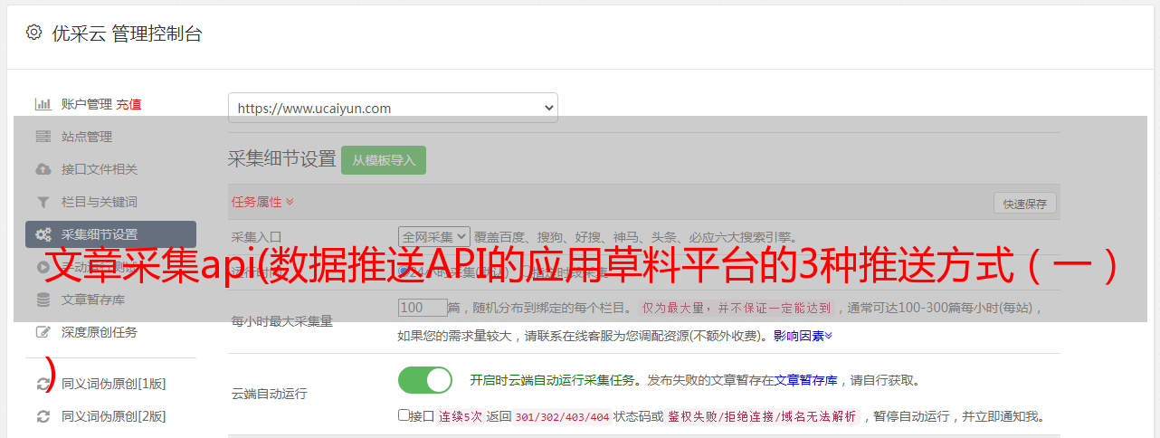 优采云 发布时间: 2021-10-29 06:13文章采集api(数据推送API的应用草料平台的3种推送方式(一)