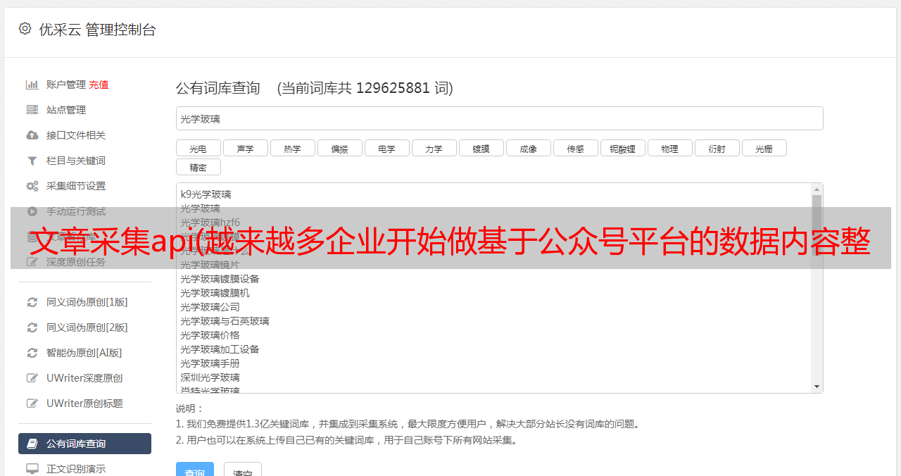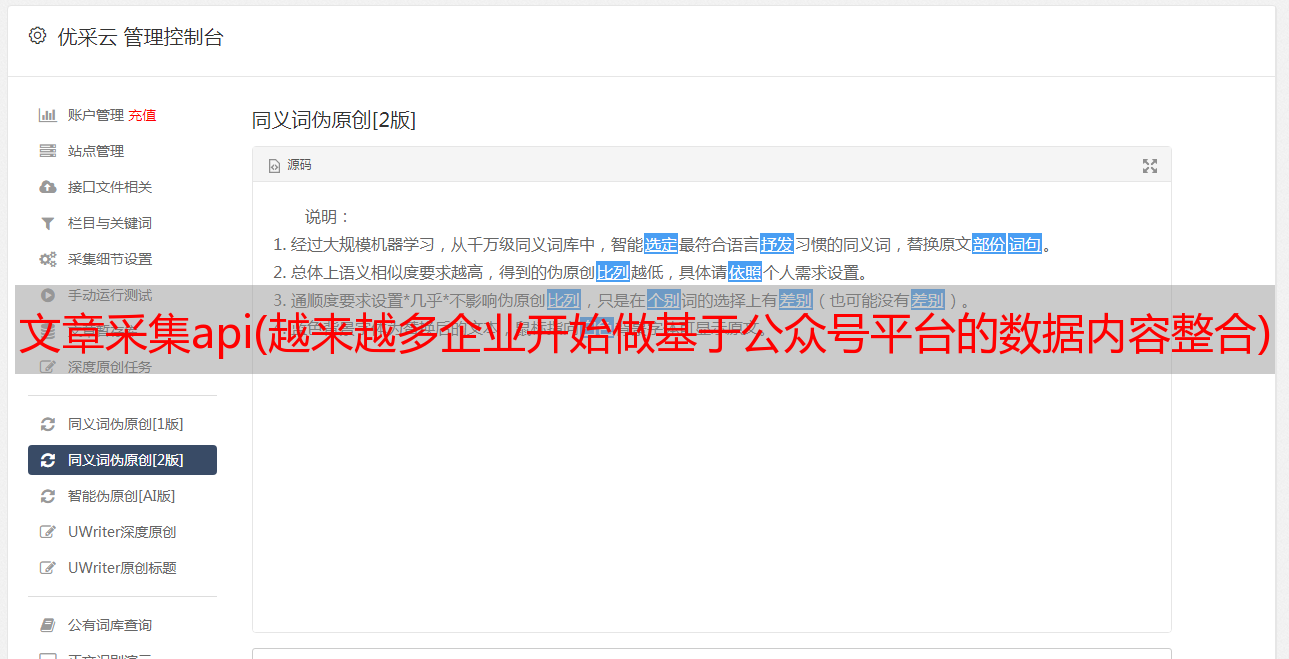 优采云 发布时间: 2021-10-29 06:16文章采集api(越来越多企业开始做基于公众号平台的数据内容整合)