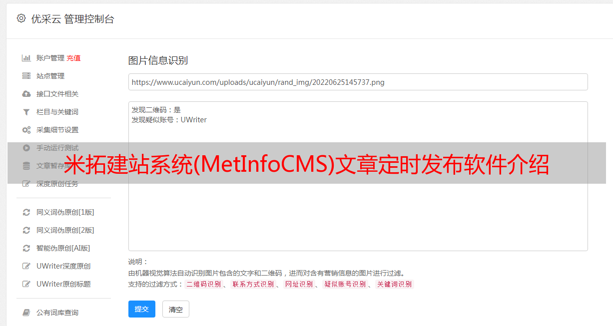 优采云 发布时间: 2021-03-12 13:00米拓建站系统(MetInfoCMS)文章定时发布软件介绍