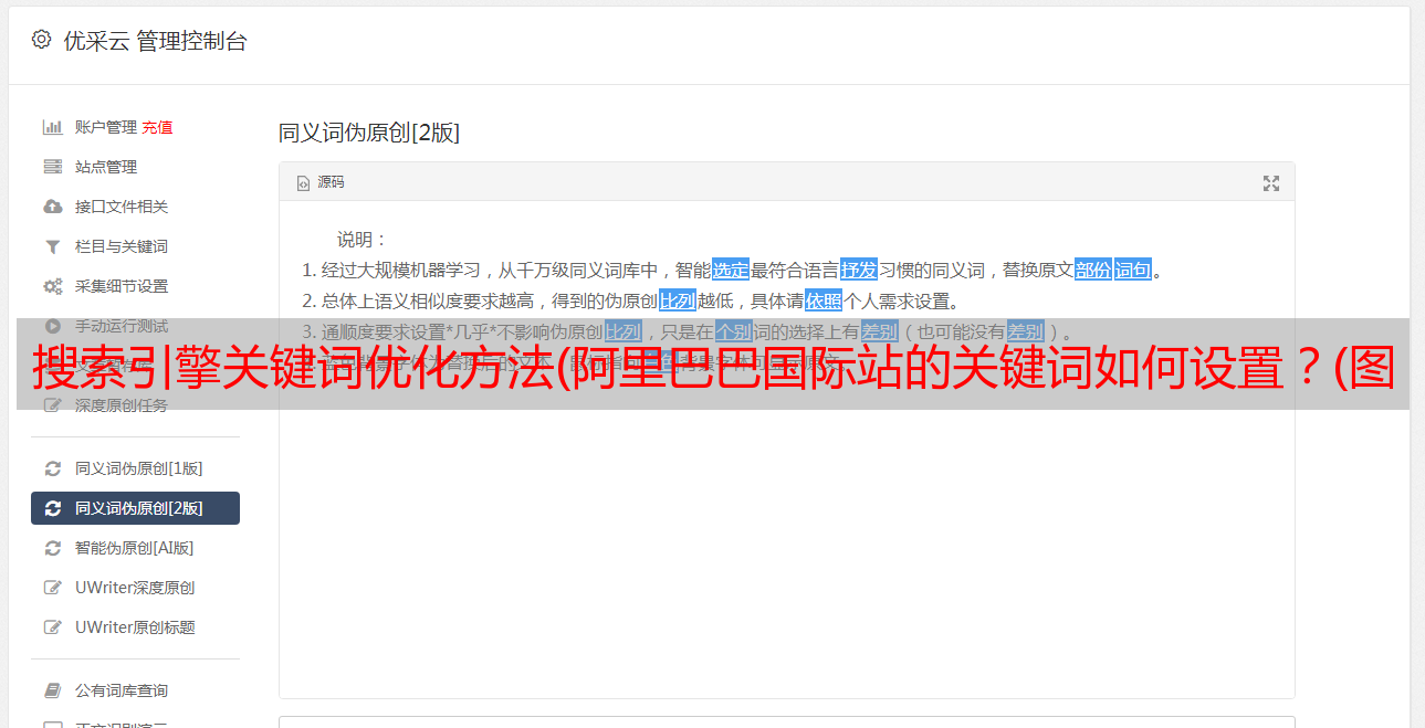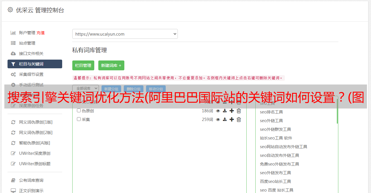 优采云 发布时间: 2021-10-29 14:06搜索引擎关键词优化方法(阿里巴巴国际站的关键词如何设置?(图)作用及填写要求)