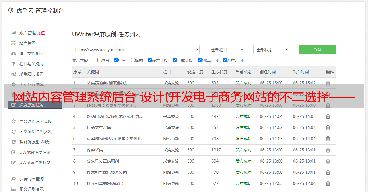 优采云 发布时间: 2021-10-29 16:06网站内容管理系统后台 设计(开发电子商务网站的不二选择——文静杜柯柯摘要)