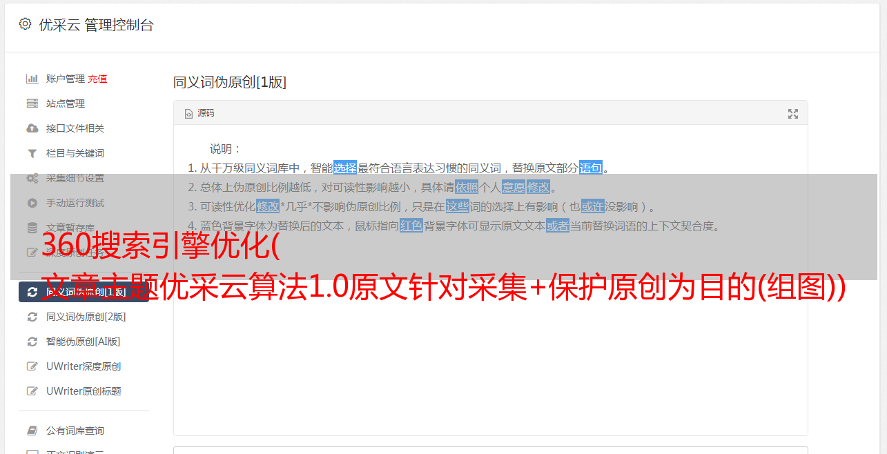 360搜索引擎优化( 文章主题优采云算法1.0原文针对采集+保护原创为目的(组图))