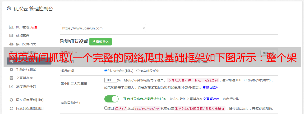 优采云 发布时间: 2021-10-29 21:14网页新闻抓取(一个完整的网络爬虫基础框架如下图所示:整个架构)