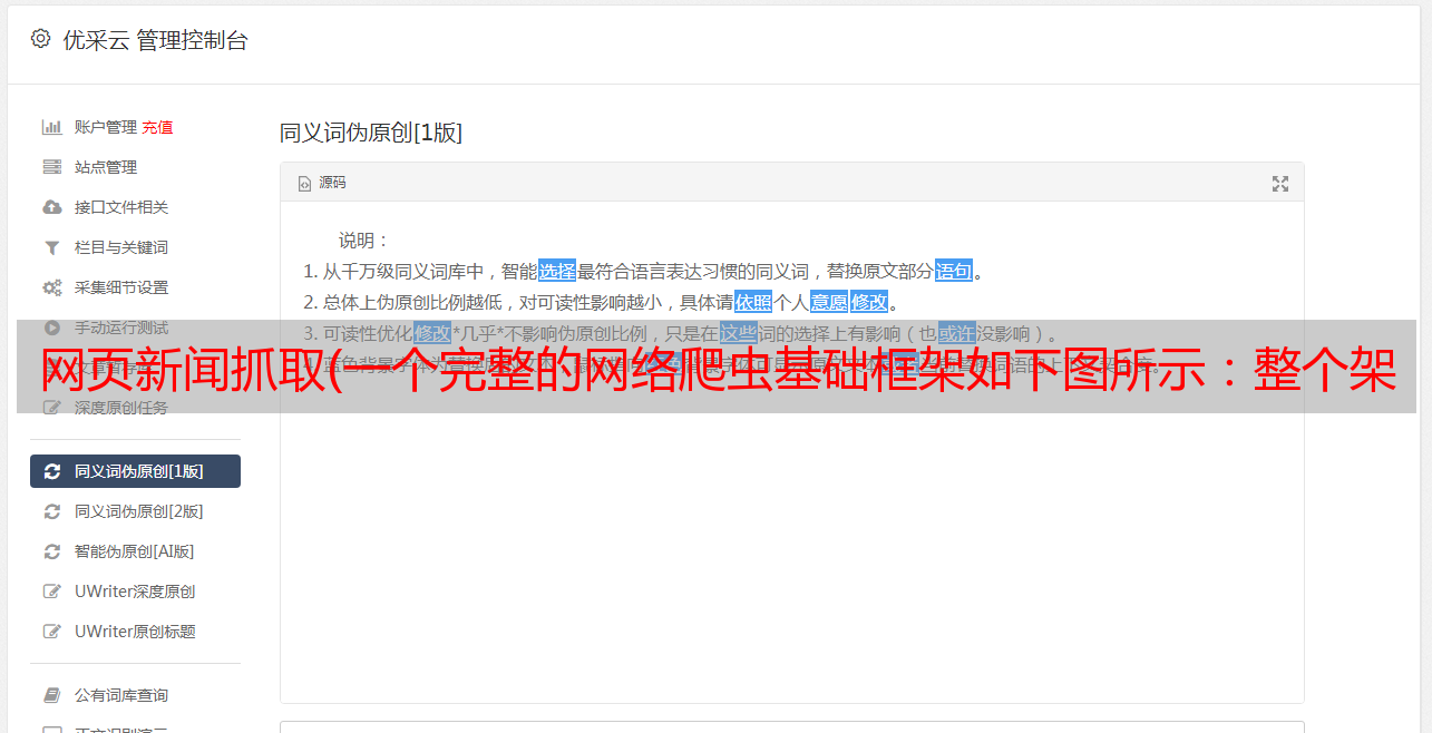 网页新闻抓取(一个完整的网络爬虫基础框架如下图所示:整个架构)