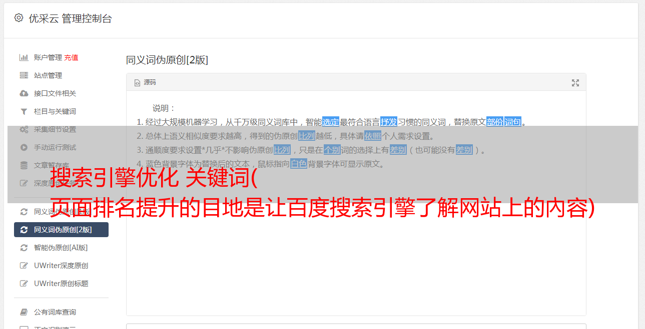 搜索引擎优化 关键词( 页面排名提升的目地是让百度搜索引擎了解网站上的內容)