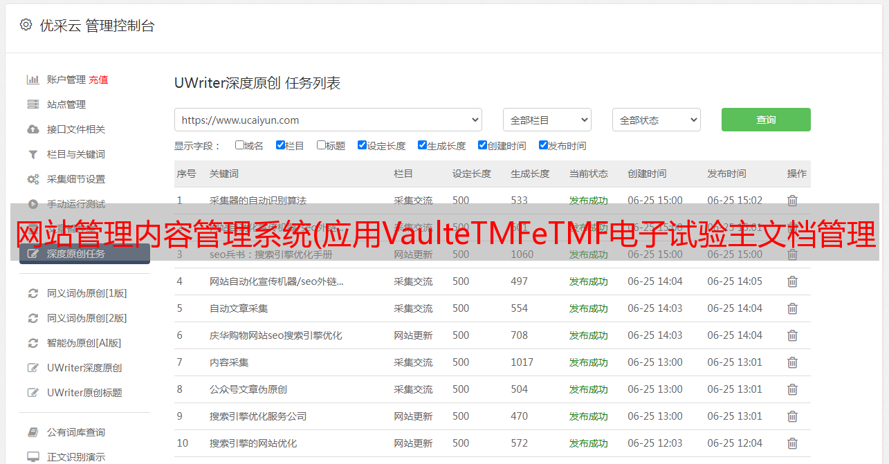 优采云 发布时间: 2021-10-30 09:12网站管理内容管理系统(应用VaulteTMFeTMF电子试验主文档管理应用(组图))