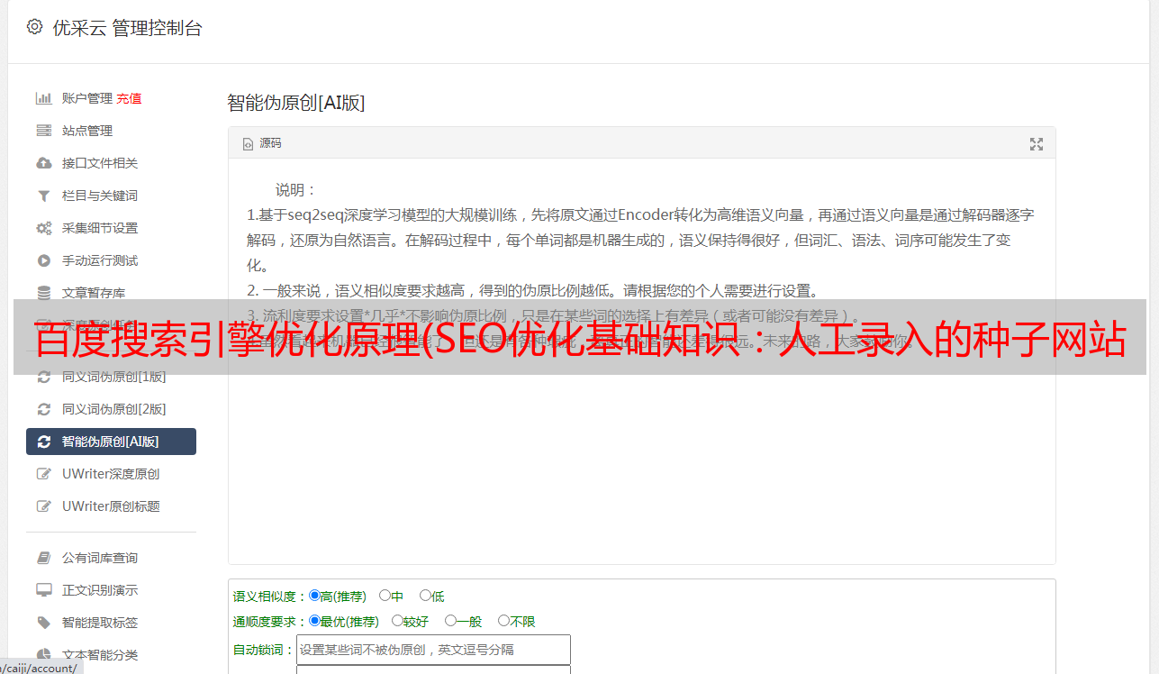 优采云 发布时间: 2021-10-30 13:12百度搜索引擎优化原理(SEO优化基础知识:人工录入的*敏*感*词*网站(一))