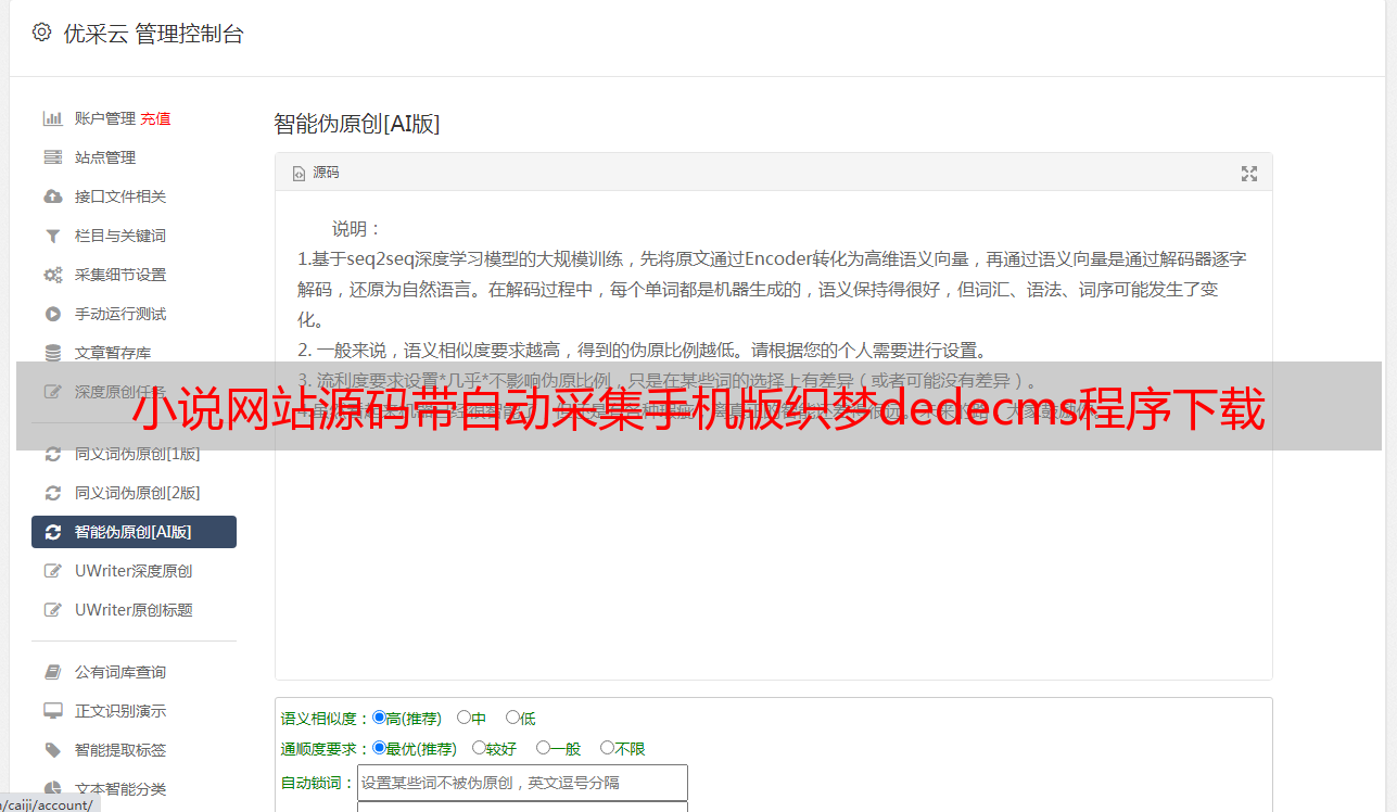 优采云 发布时间: 2021-03-20 12:00小说网站源码带自动采集手机版织梦dedecms程序下载