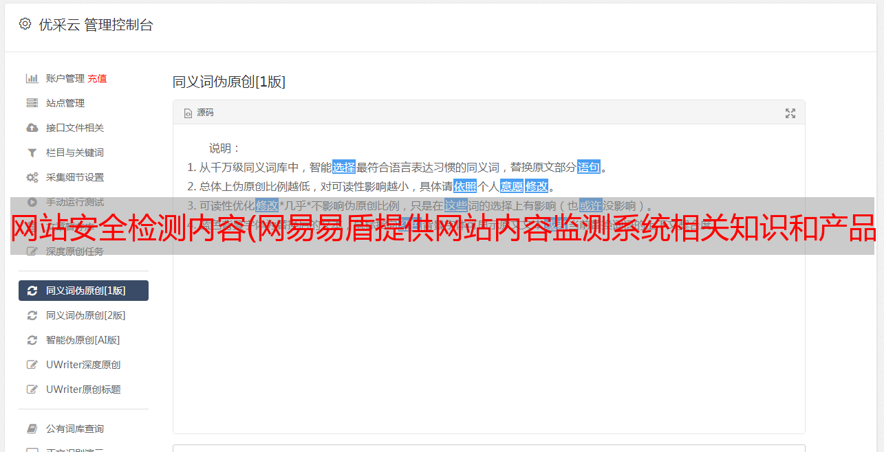 优采云 发布时间: 2021-10-30 18:13网站安全检测内容(网易易盾提供网站内容监测系统相关知识和产品介绍(图))