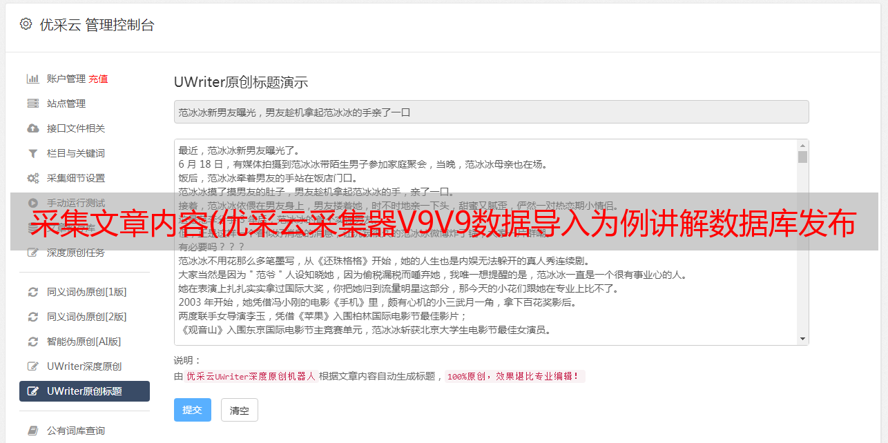采集文章内容(优采云采集器V9V9数据导入为例讲解数据库发布配置如何制作)