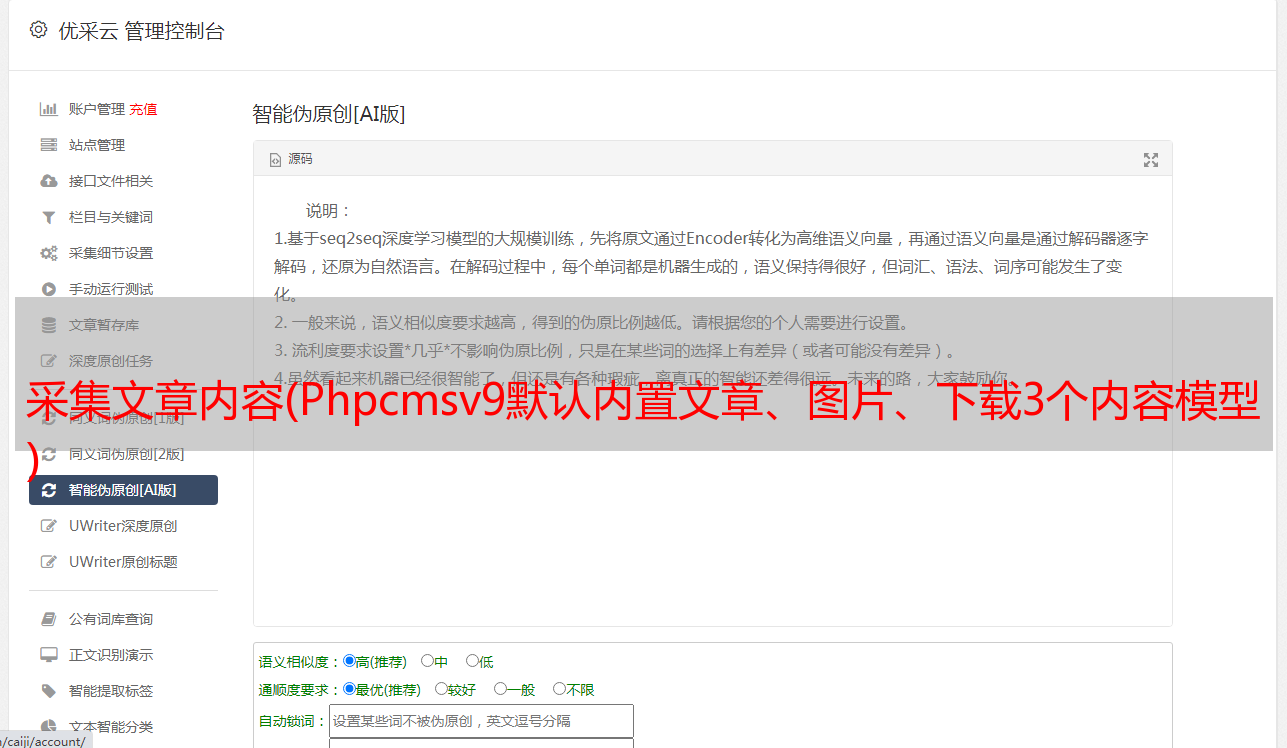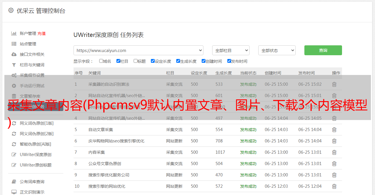 优采云 发布时间: 2021-10-30 23:02采集文章内容(Phpcmsv9默认内置文章、图片、下载3个内容模型
