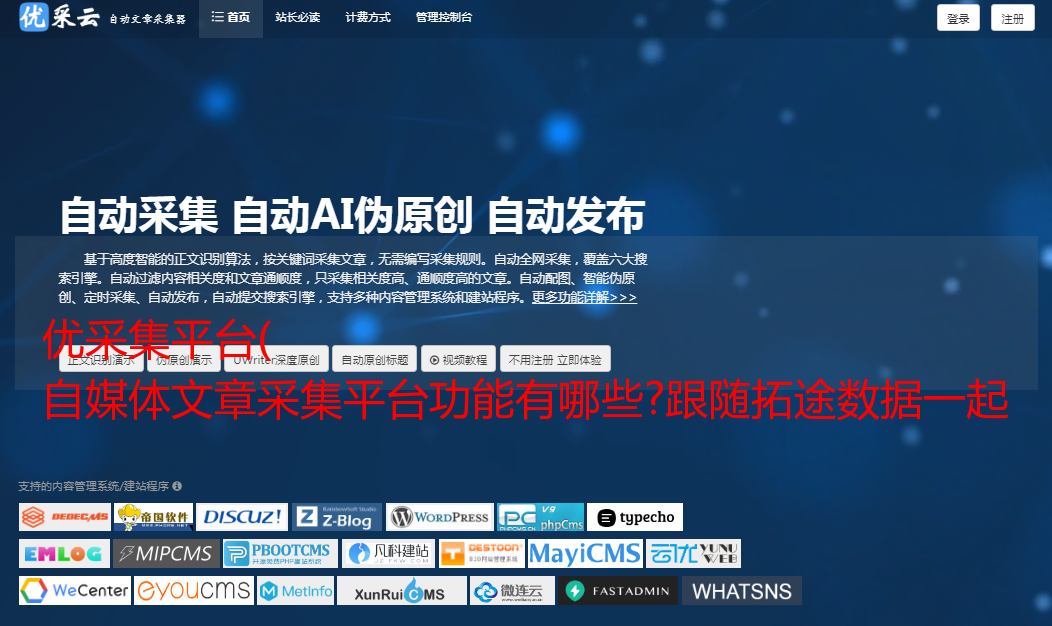 优采集平台( 自媒体文章采集平台功能有哪些?跟随拓途数据一起看下)