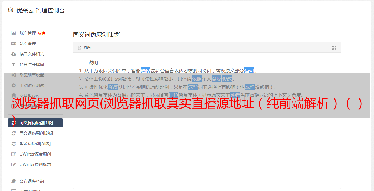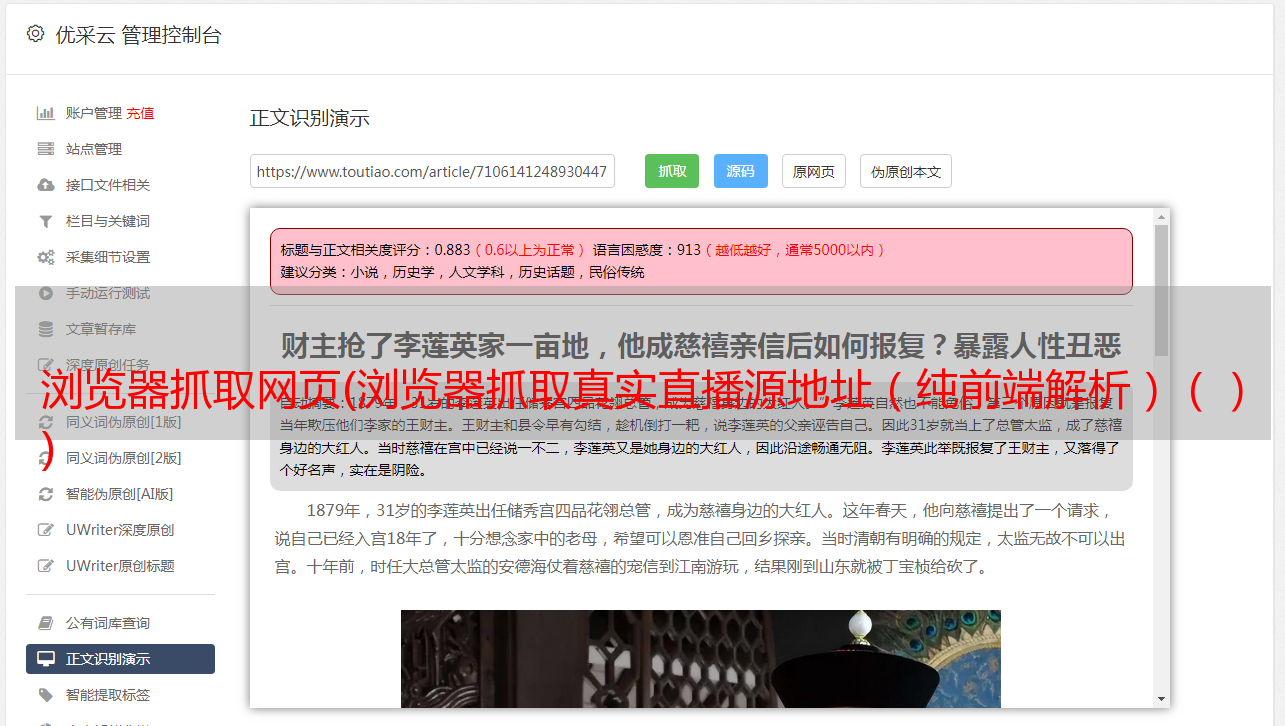 优采云 发布时间: 2021-10-31 04:06浏览器抓取网页(浏览器抓取真实直播源地址(纯前端解析)()