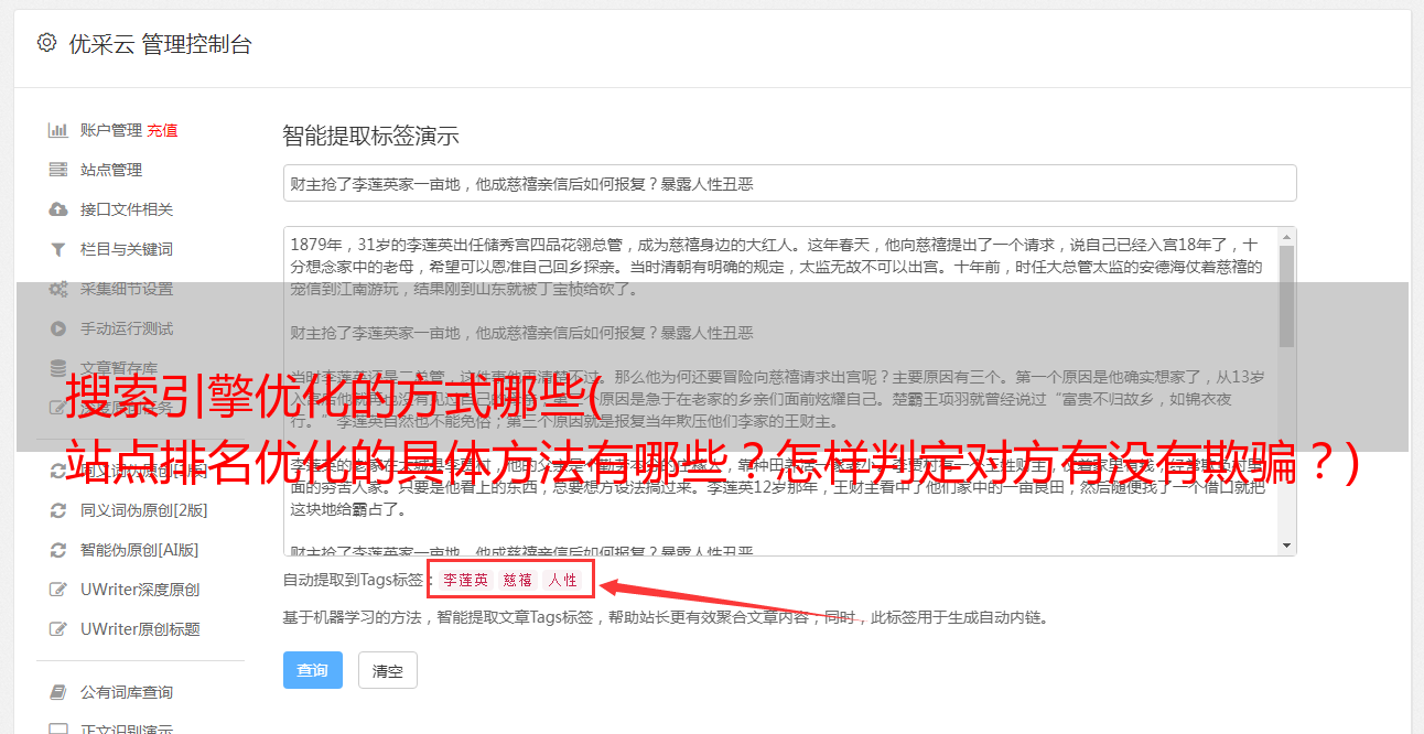 当网站有收录或没有收录时,我们可以进入[收录之家]、[小红帽SEO]进行排名,收录,引用蜘蛛,一键生成文章等,效果相当不错,可以节省不少时间。