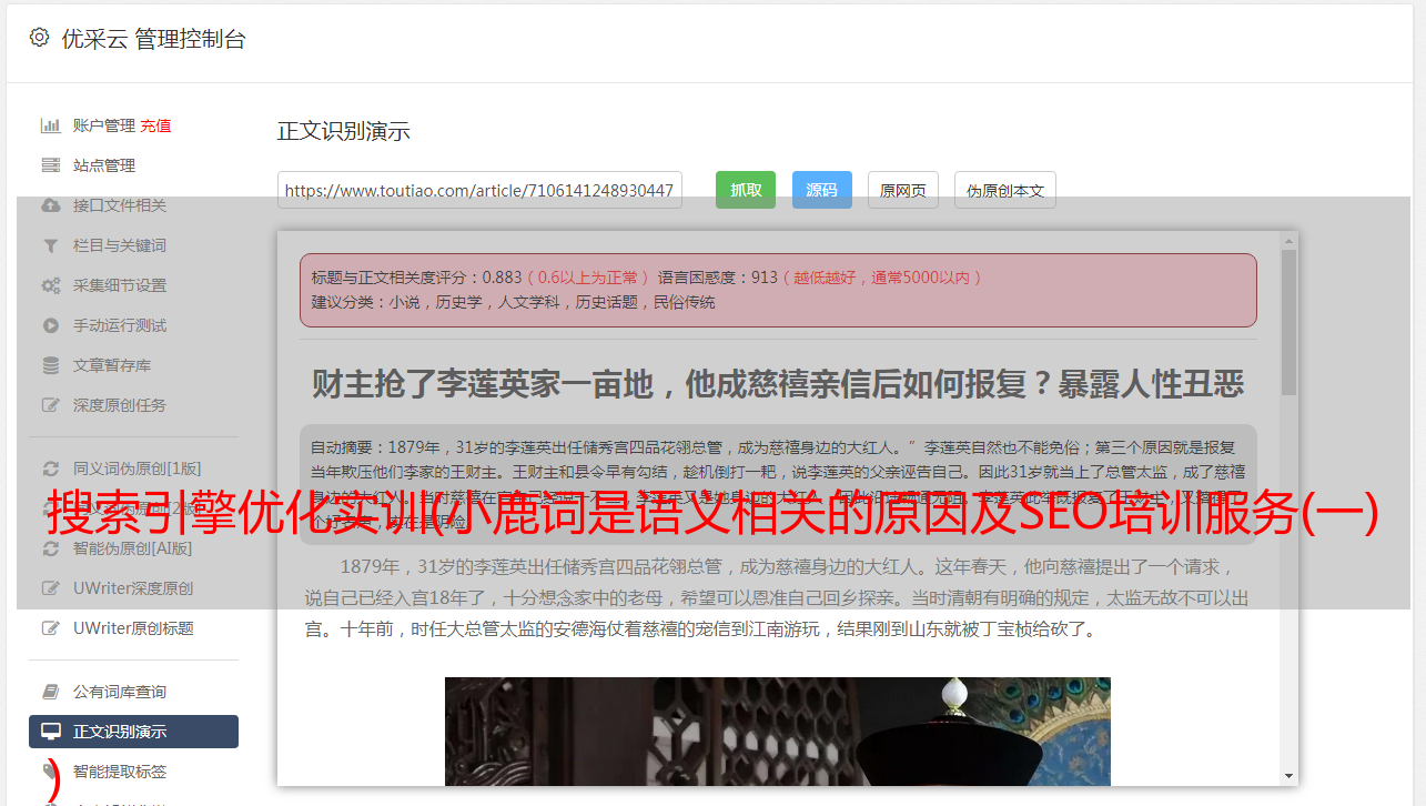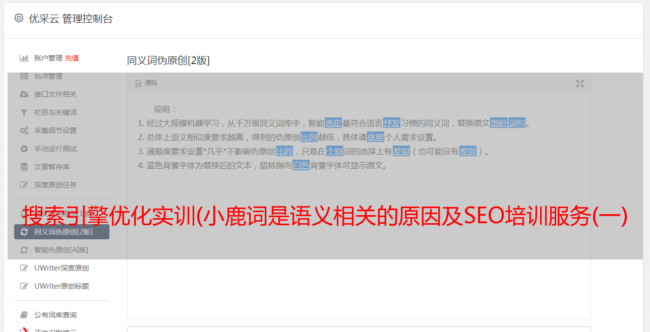 优采云 发布时间: 2021-10-31 10:09搜索引擎优化实训(小鹿词是语义相关的原因及SEO培训服务(一)