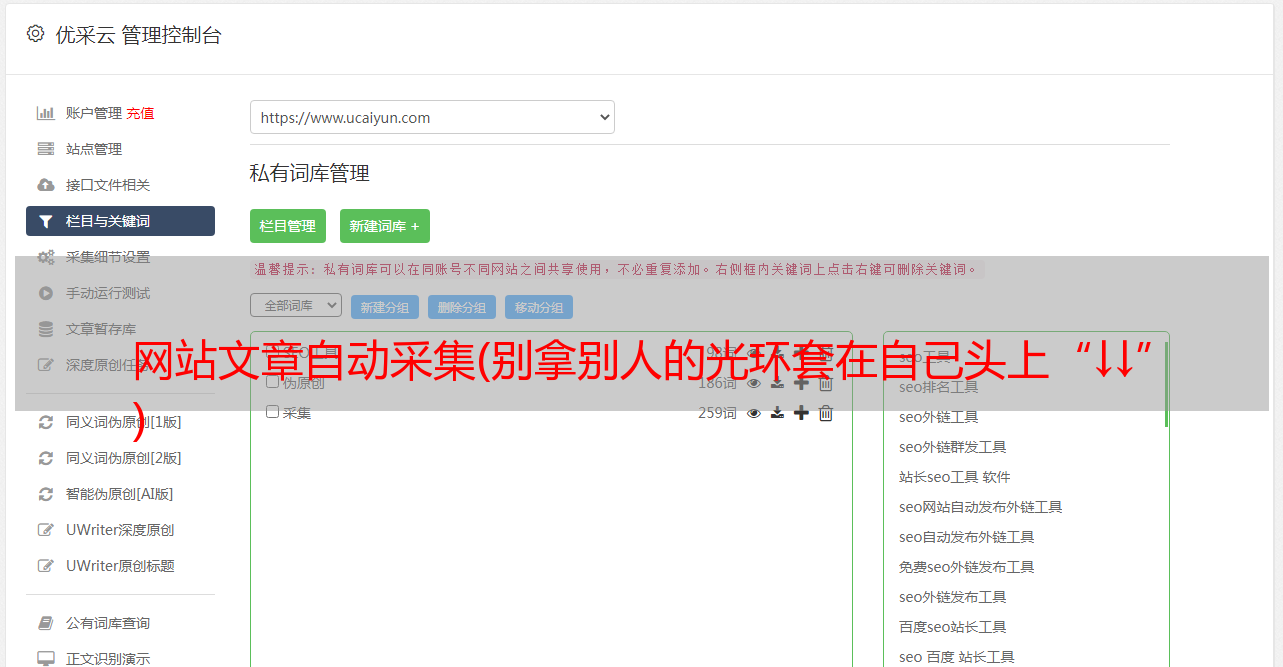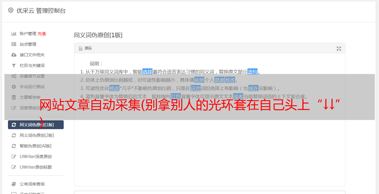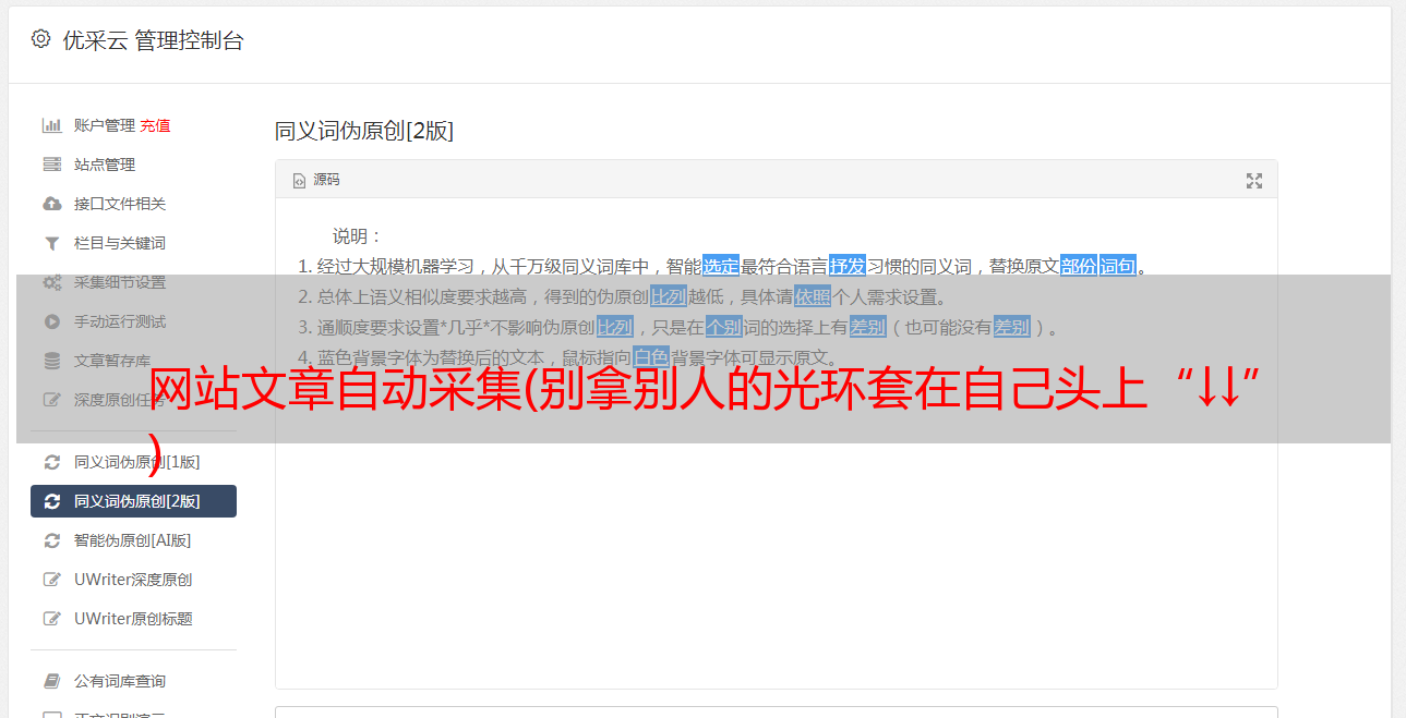 2.批处理伪原创、伪原创支持优采云指定文件夹中指定文件类型的数据库批处理!