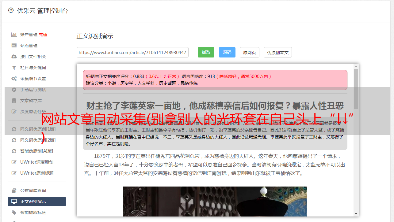 优采云 发布时间: 2021-10-31 12:13网站文章自动采集(别拿别人的光环套在自己头上“↓↓”
